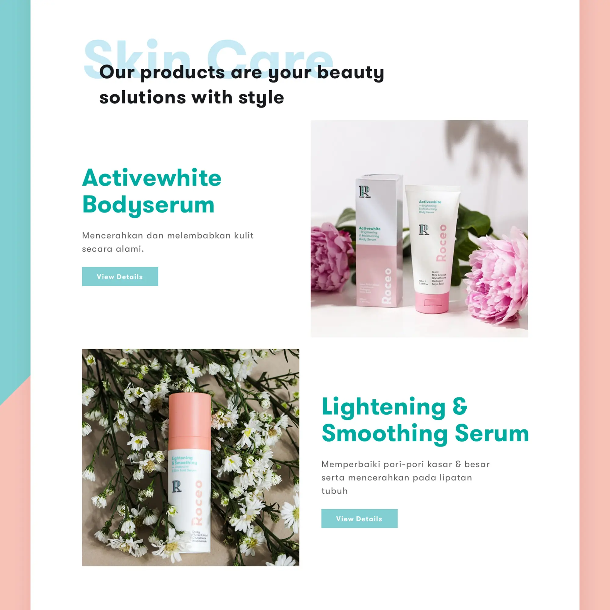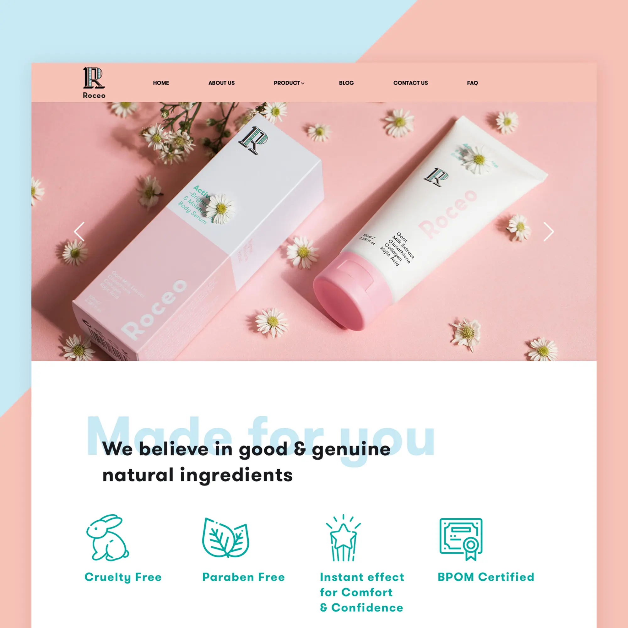 A digital branding website for Roceo, a local skincare brand, created with the use of natural ingredients